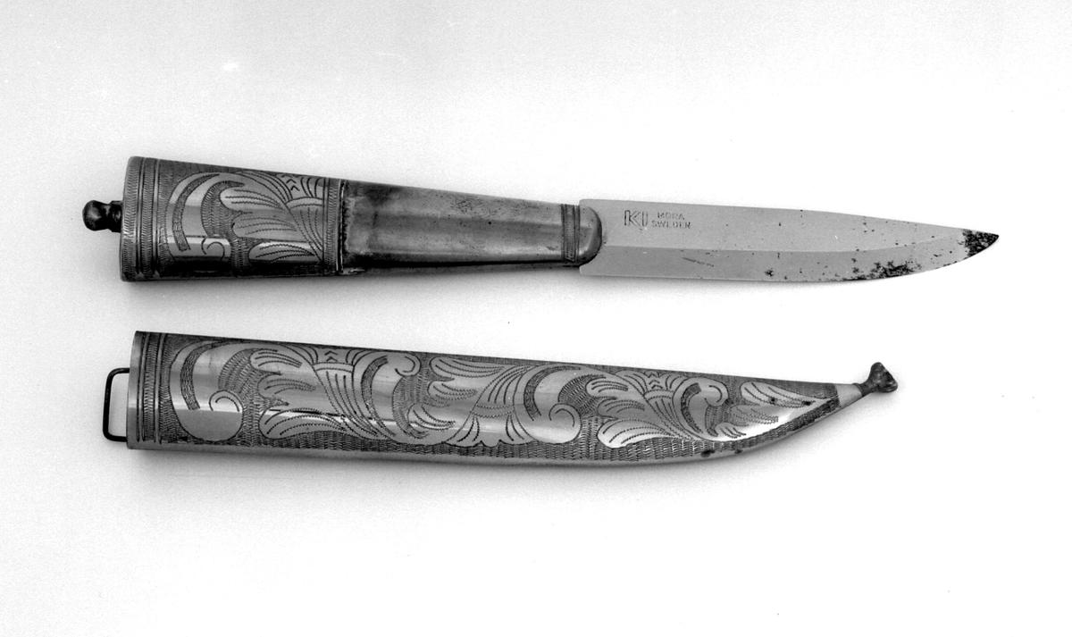 The Tater knife makers rarely forged the blades themselves. They used mostly standard, factory-produced Swedish or Norwegian blades. The explanation for so few hand-forged blades being used is that the knife maker did not want another craftsman to have made any part of his knife.